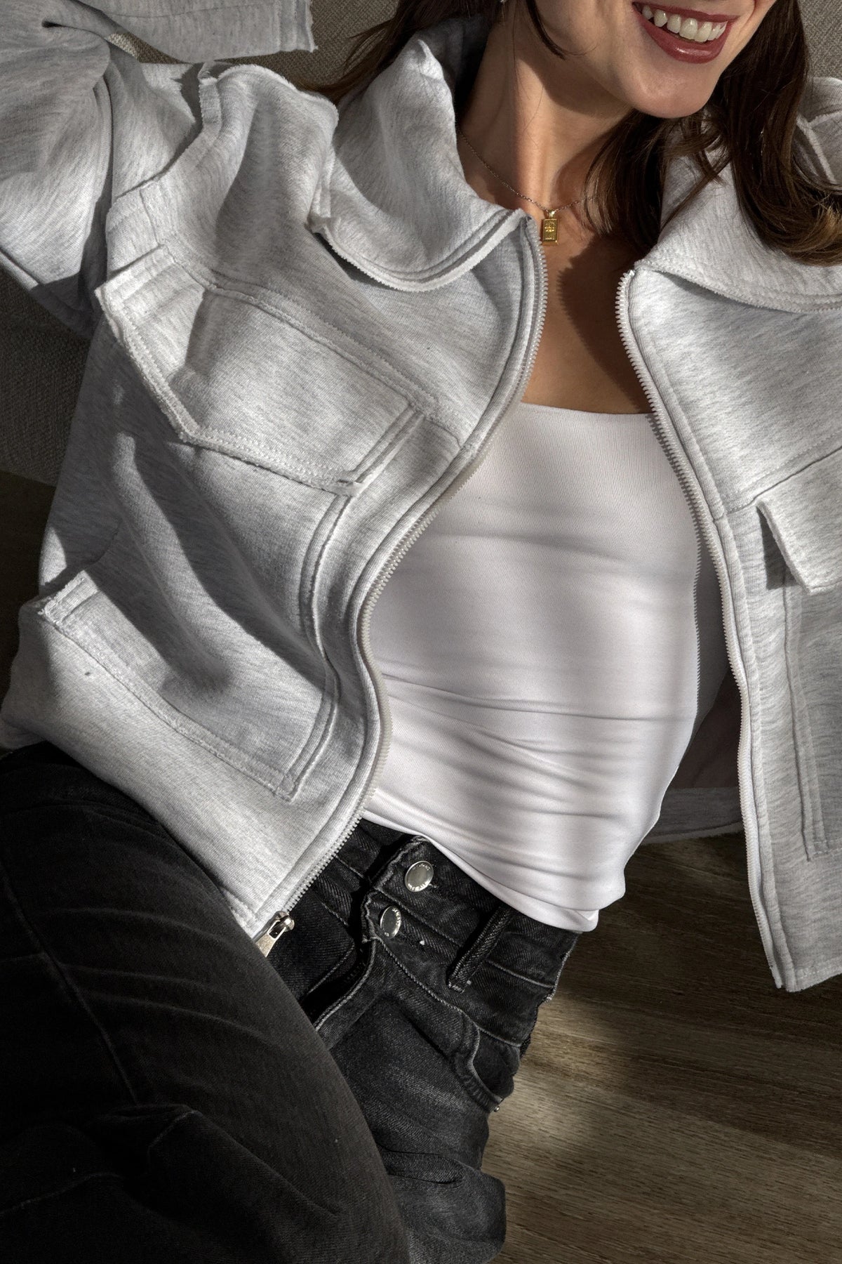 A structured, modern collar jacket designed for everyday comfort and elevated style. Crafted from a soft cotton-poly blend, this jacket offers warmth without the bulk and a clean silhouette that suits both casual and smart outfits. Finished with front pockets and a relaxed drop-shoulder cut for effortless styling.